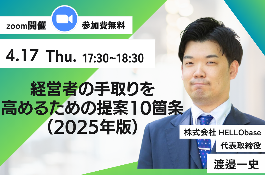 【内容】 経営者の個人所得を最大化するための具体的な提案方法を紹介します。 税制優遇や節税対策を組み合わせ、経営者がより多くの手取りを得られるよう支援するための10の手法を学びましょう! 【テーマ】 ① 経営者報酬の最適 […]